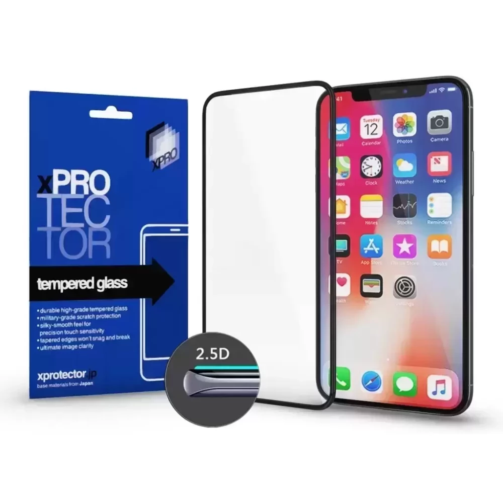 A teljes kijelzőt védő, speciálisan edzett, valódi Japán üveg réteget befoglaló kompozit struktúra (vagy ahogy helytelenül hívják: üvegfólia), kerekített szélekkel, 9H keménységgel, melyet még hegyes tárgyakkal, nagy erővel is nehéz megkarcolni. Mindössze 0.33mm vastag, így az érintőkijelző érzékenységét sem befolyásolja. Könnyen felhelyezhető. A plazmapermetezéses technológiának köszönhetően ujjlenyomat mentes a felülete. A fényáteresztő képessége 96%-os. A 2.5D-s Xprotector kijelzővédő, a már jól bevált 3D-s Xprotector kijelzővédő kistestvére. A 2.5D-s üveg csak a szélein lett lekerekítve, így összhatásában is keskenyebb megjelenést biztosít.