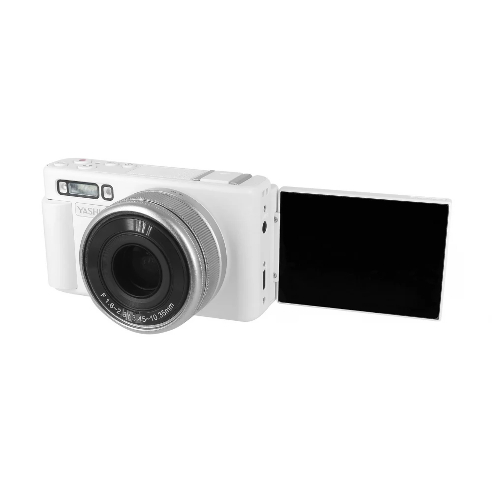 A Yashica City 100 egy 2,8 hüvelykes, dönthető LCD-képernyővel rendelkezik, amely ideális szelfik és vlogolás készítéséhez. Az intuitív gombelrendezés egyszerűvé teszi a kezelést, és lehetővé teszi még a kezdő felhasználók számára is, hogy gyorsan elsajátítsák a kamera használatát. Az arcfelismerő autofókusz minden alkalommal éles portrékat biztosít, a beépített kreatív szűrők pedig egyedi hangulatot és személyiséget kölcsönöznek a képeknek további szerkesztés nélkül.
