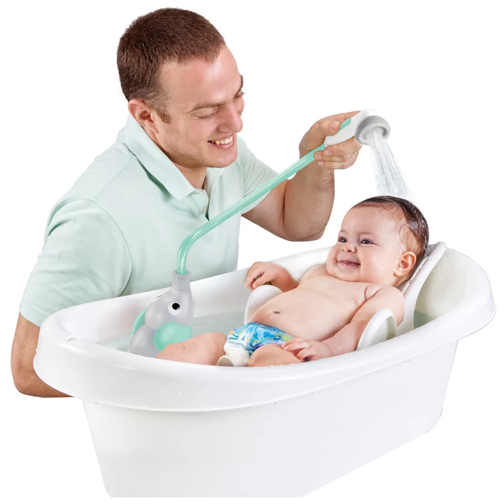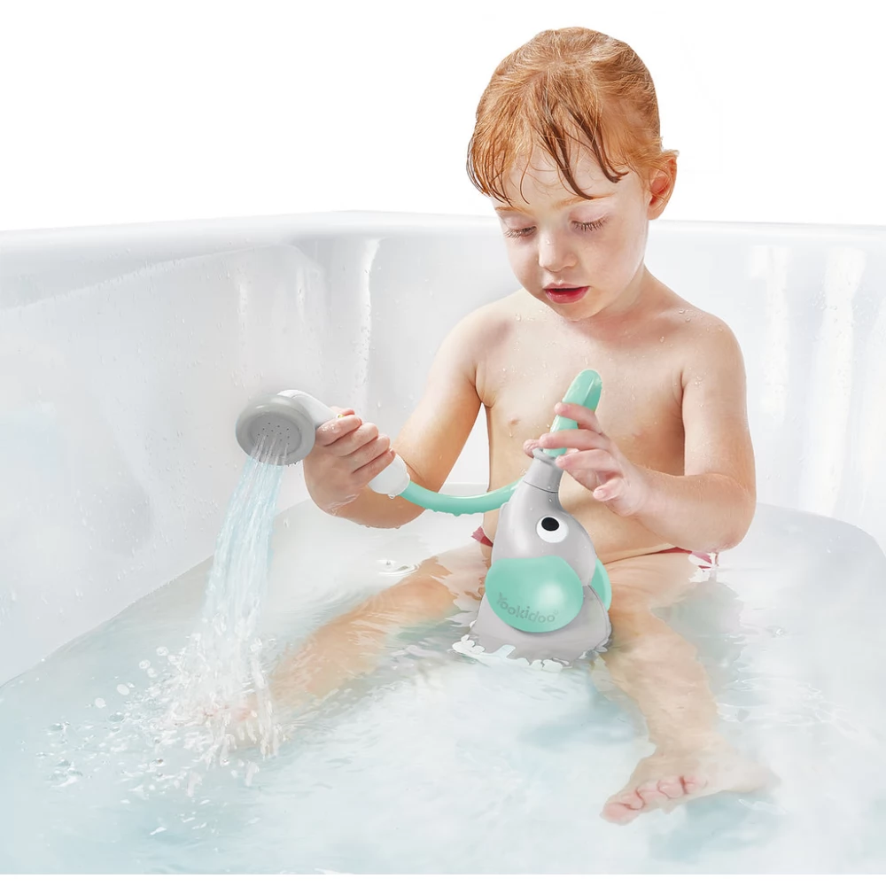 Elemmel működő, nyugtató hatású elefánt figurás zuhany kisebb gyerekeknek.