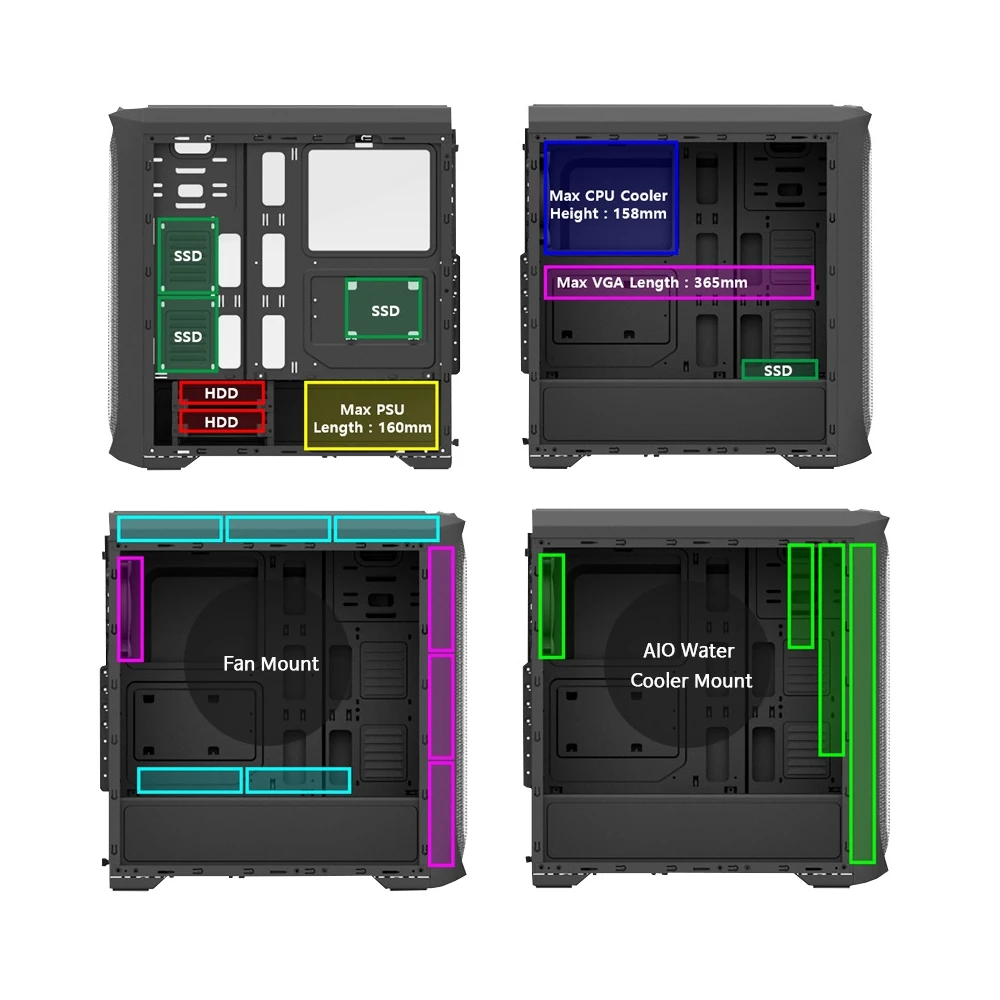 - 4 db beépített RGB ventilátor (3 db első és 1 db hátsó)