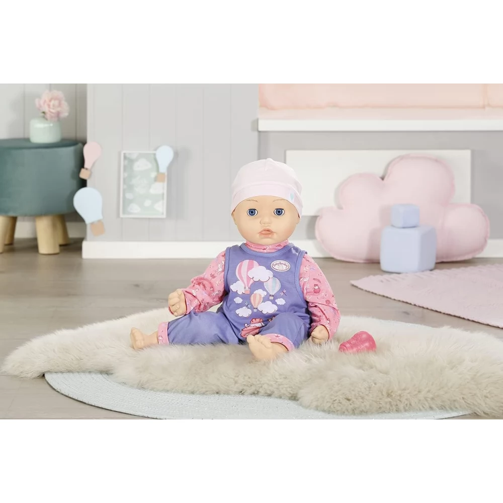 Nagy méretű, 54cm-es Baby Annabell baba, ami nemcsak alvós szemekkel rendelkezik (fektetéskor lecsukódó szemek), de a gyerekek akár az igazi babák ruhájába is felöltöztethetik. A baba könnyű, teste puha anyagú töltést kapott.